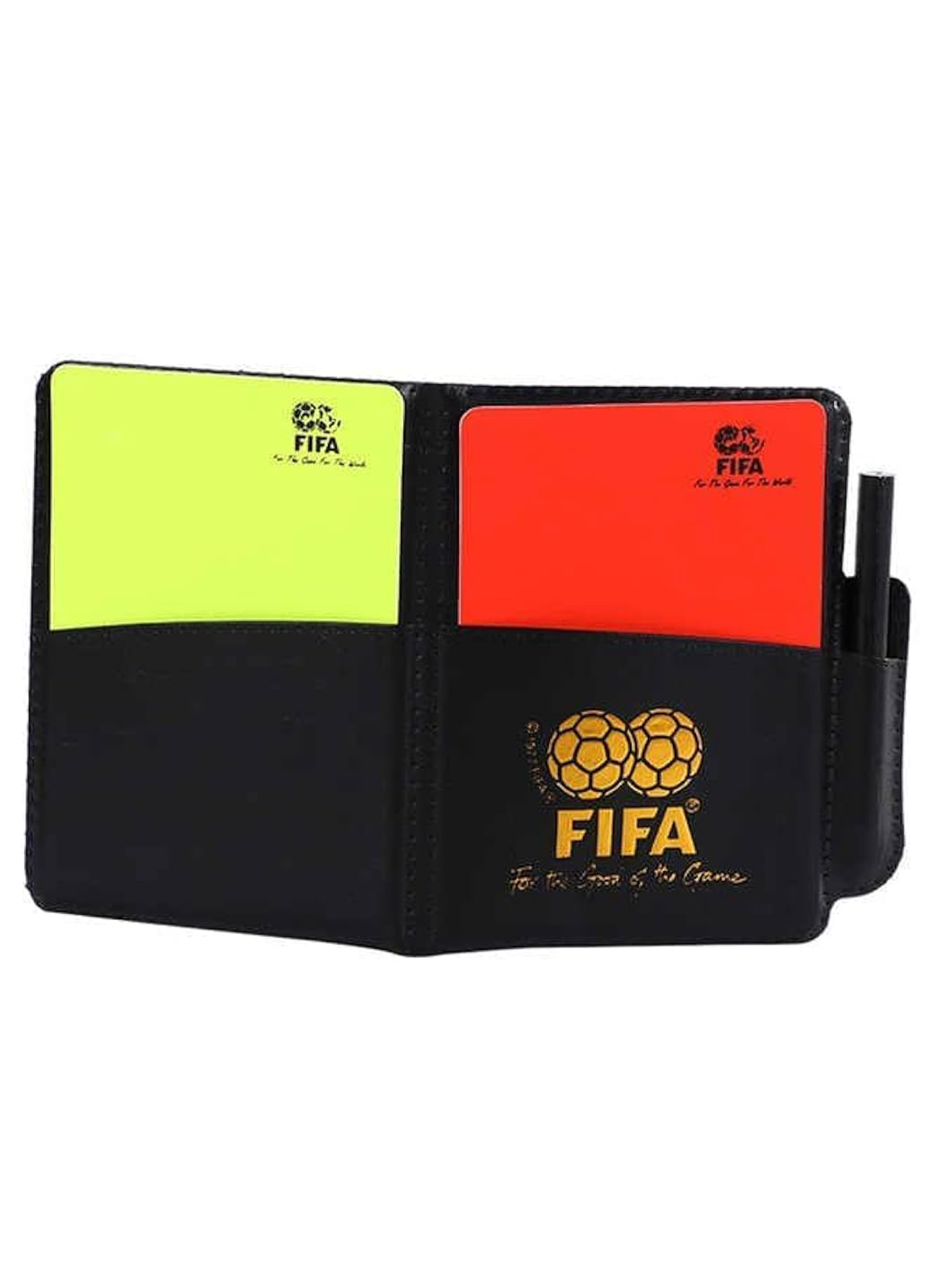 The Football Referee Wallet Qatar by FlexForce is a must-have accessory for referees at all levels. Made from durable PU material, this black wallet includes standard red and yellow cards, making it perfect for professional and amateur football matches.