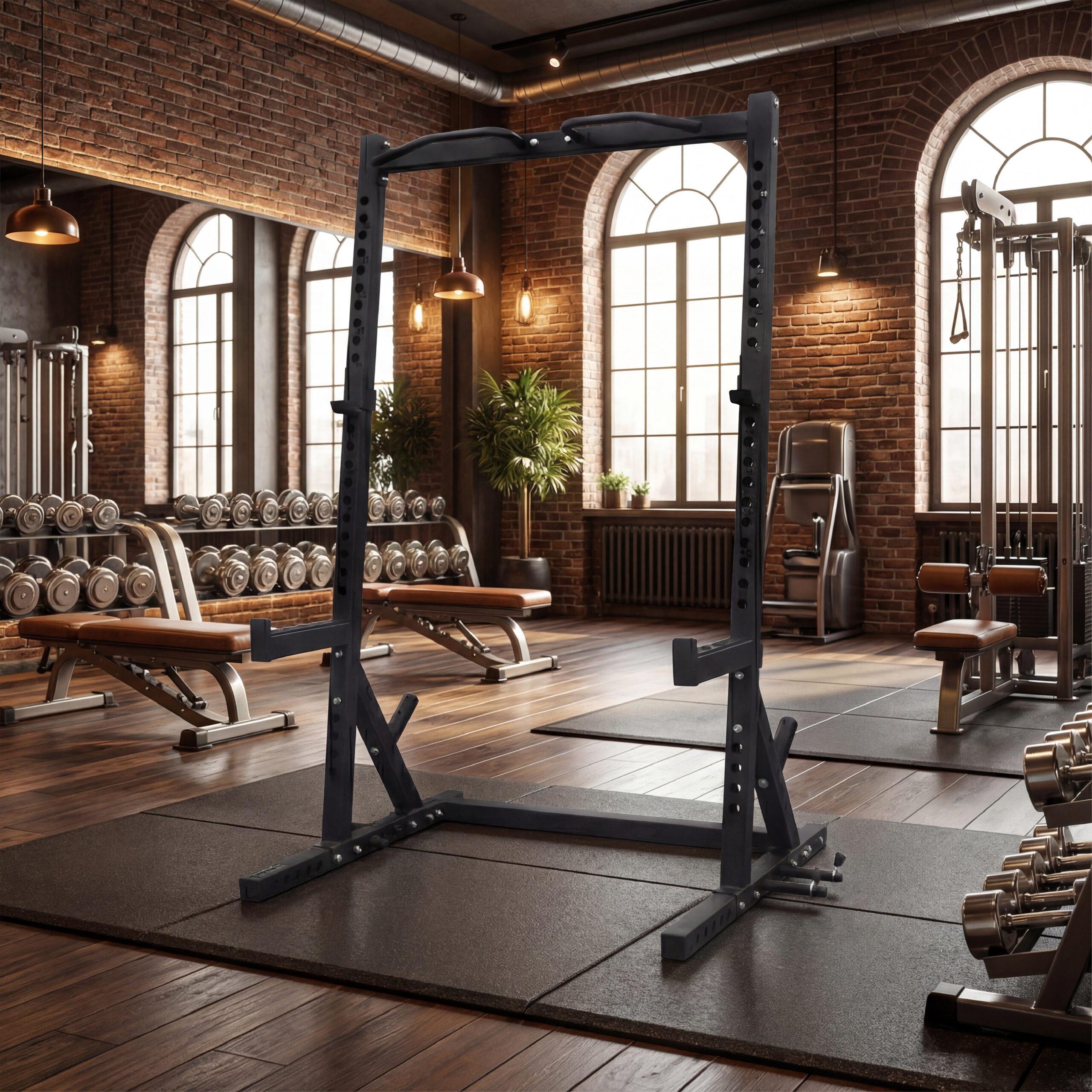 The Half Rack Qatar is a professional strength training solution designed for athletes and beginners alike. It combines durability, safety, and performance. Moreover, its compact design makes it perfect for home gyms as well as professional fitness centers.