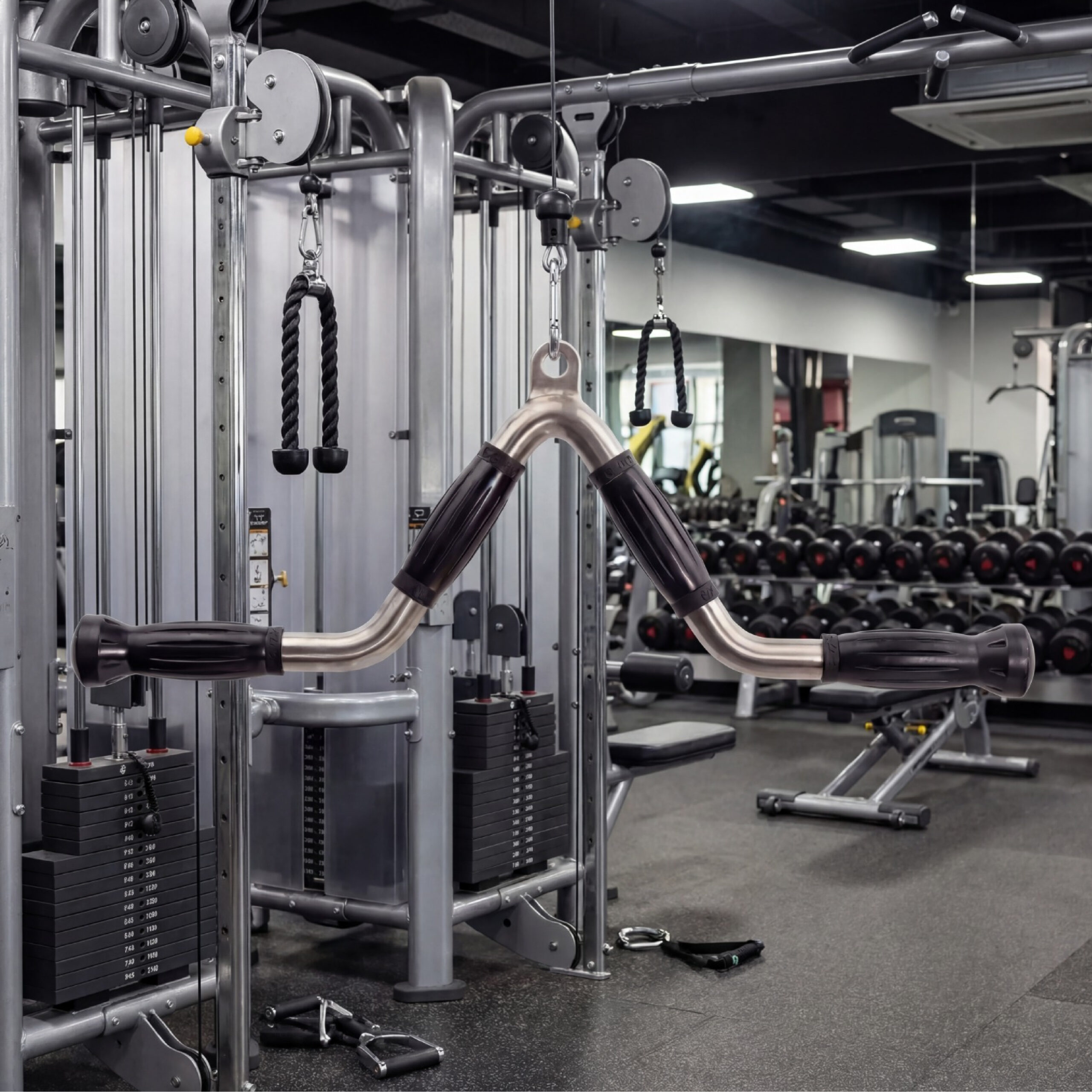 With its ergonomic V-shaped design, this chrome bar allows for natural wrist alignment, reducing strain on the joints while maximizing the efficiency of every rep. Whether you are targeting your triceps, biceps, or upper back muscles, the bar ensures smooth motion and secure grip during a wide range of cable exercises.