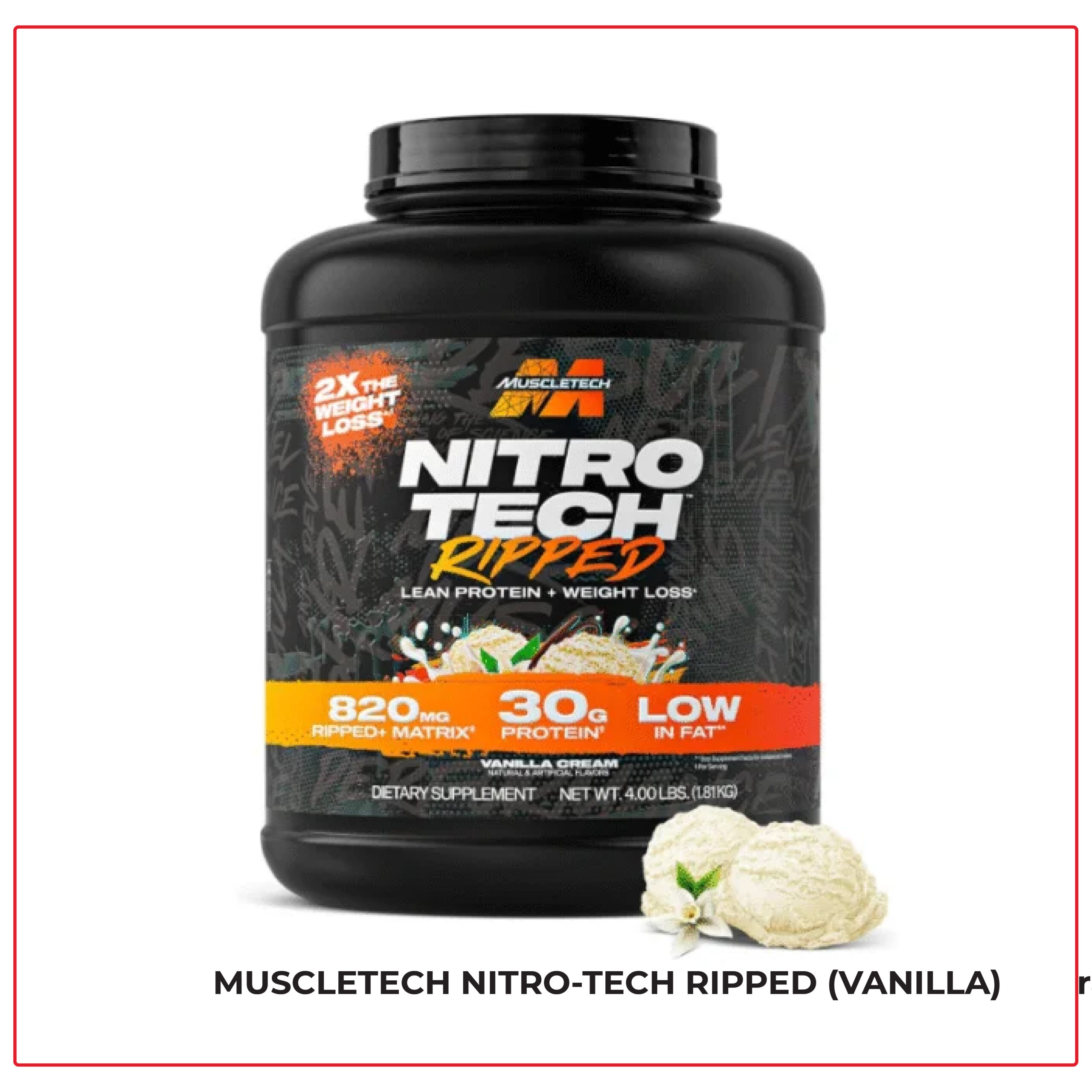 Nitro-Tech Ripped is more than just a protein powder — it’s a complete body transformation formula. By combining pure whey protein isolate and peptides with fat-burning ingredients like L-Carnitine, CLA, and Green Tea Extract, MuscleTech has created a supplement that helps you build lean muscle, support recovery, and accelerate weight loss — all in a delicious French Vanilla Swirl flavor.