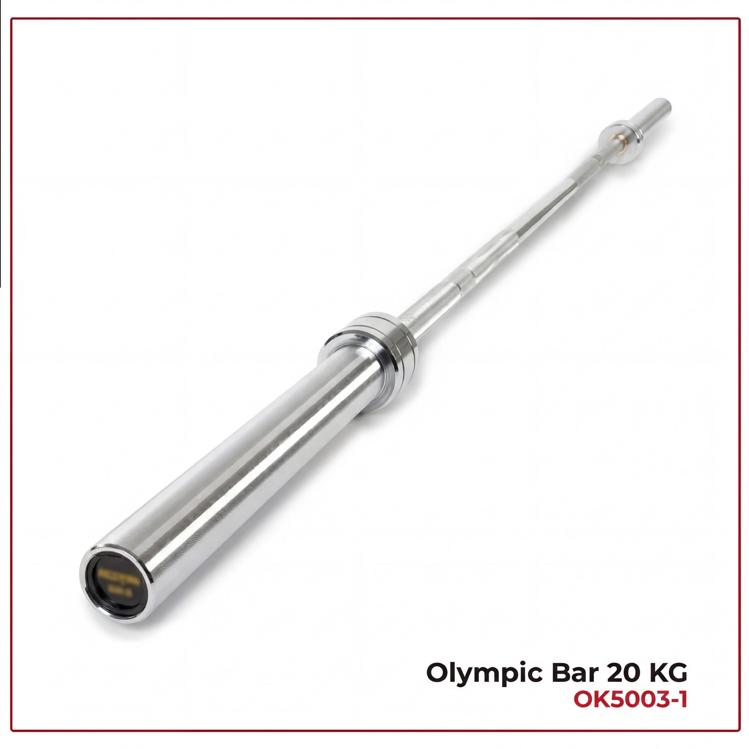 The Olympic Bar OKPRO OK5003-1 Qatar is essential for squats, deadlifts, bench press, overhead press, rows, cleans, and Olympic lifts. Its 20 KG standard weight supports muscle growth, power development, and endurance training, making it ideal for structured strength programs.