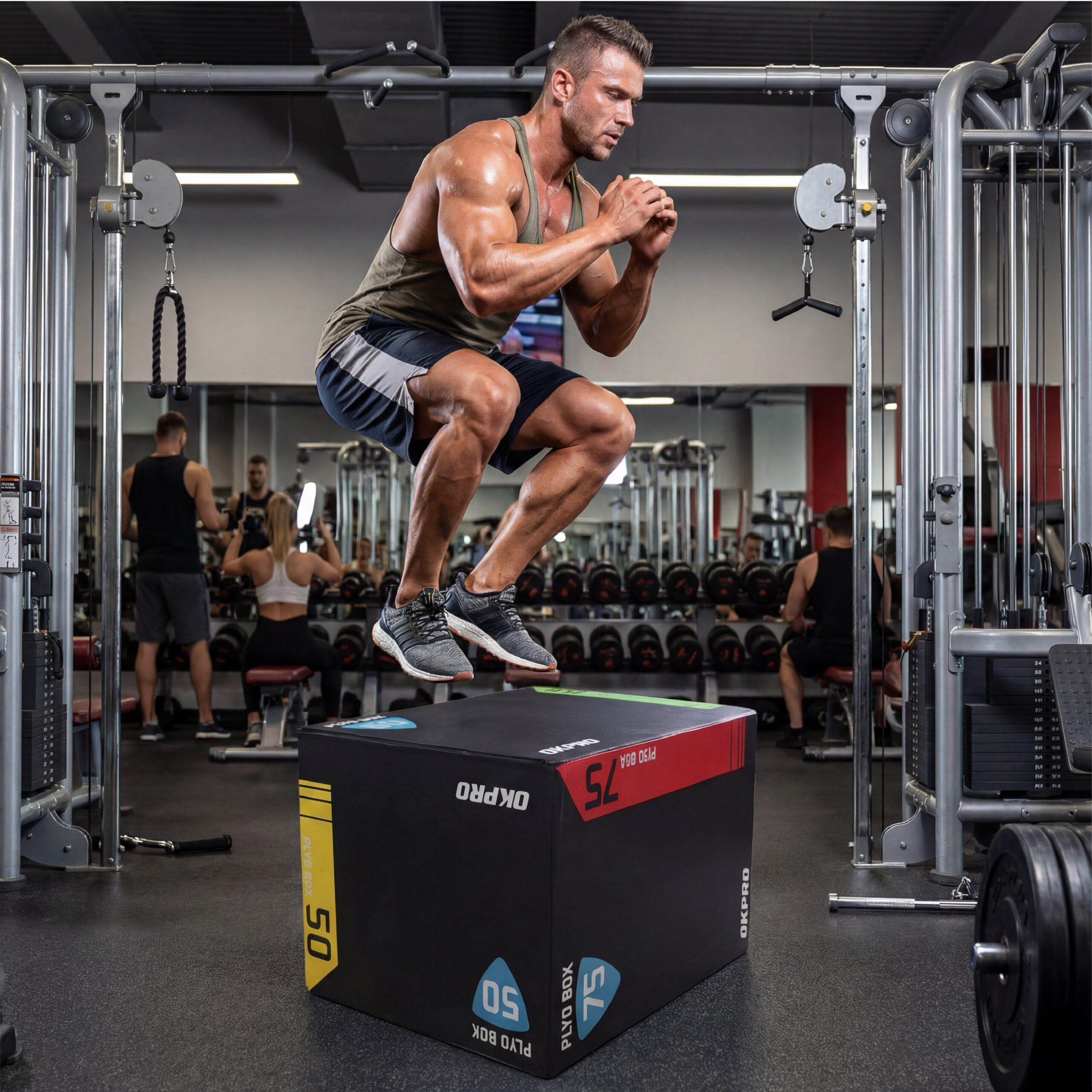 The Soft Jump Box OKPRO OK0049E-1 Qatar is designed to enhance performance and safety in plyometric training. Moreover, the soft outer surface reduces impact on joints and prevents injuries from missed jumps, making it suitable for athletes of all levels. In addition, the three training heights (by rotating the box) provide versatility for beginners and advanced users. Its lightweight yet stable construction makes it easy to move while maintaining durability for long-term use. As a result, this box is ideal for CrossFit, HIIT, and home or gym-based functional training.